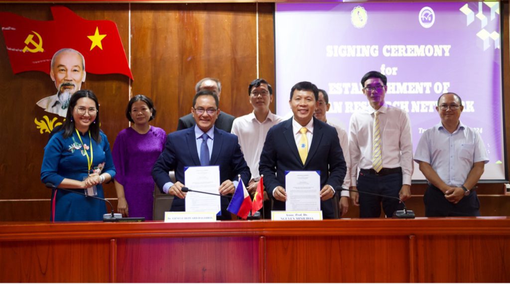 (TVU) – On April 8, 2024, Dr. Ernest Howard B. Dagohoy, President of Central Philippine University (CPU), and Assoc. Prof. Dr. Nguyen Minh Hoa, Rector of Tra Vinh University (TVU), sign a Memorandum of Understanding (MOU) between Central Philippine University and Tra Vinh University.