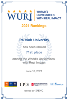 Tra Vinh University is ranked 71st – raising 15 places compared to 2020 and entering in the Top 100 of WURI Ranking 2021, top universities with positive influence and contribution to society.
