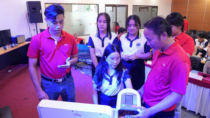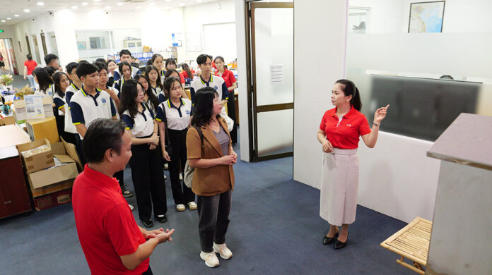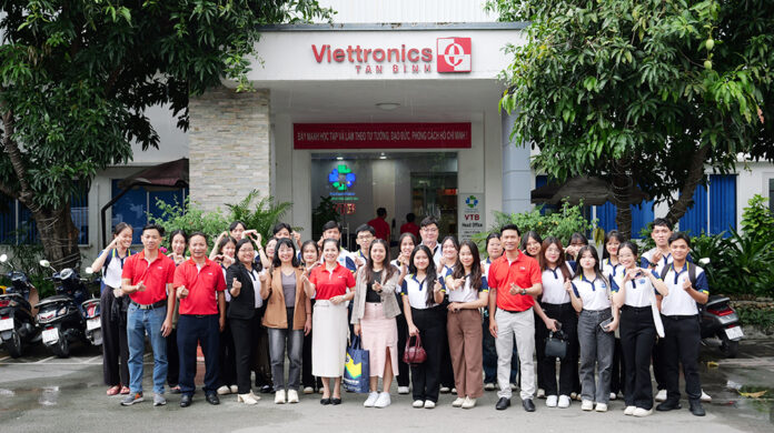 At Viettronics Tan Binh, students learn about the production process, tour the facilities, test key products, and discover the corporate culture. They also participate in friendly cultural exchange activities with company employees in a welcoming atmosphere.
