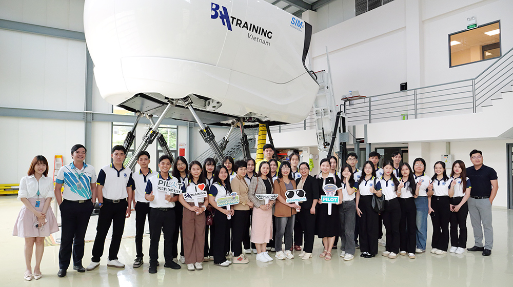 Following this, the group travels to BAA Training Vietnam, a leading aviation training organization. Here, students explore the training procedures for pilots and flight engineers and learn about various specialized roles in the aviation industry. A major highlight of the visit is the opportunity for students to experience a modern flight simulator and tour the practical training areas and international-standard classrooms.